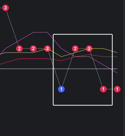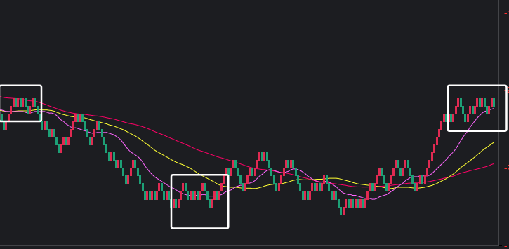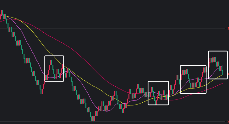 可以看到一些规律,在粉框中,如果一致,那么接下来这些跨度也会出。