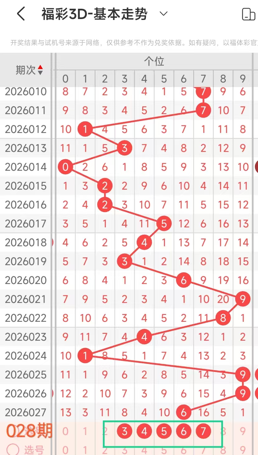 3、当个位开出6后下期开出:4190149,经统计0号出1次、1号出现2次、2号出现0次、3号出现0次、4号出现2次、5号出现0次、6号出现0次、7号出现0次、8号出现0次、9号出现2次。观察发现149号近期出现频繁,本期可以考虑。