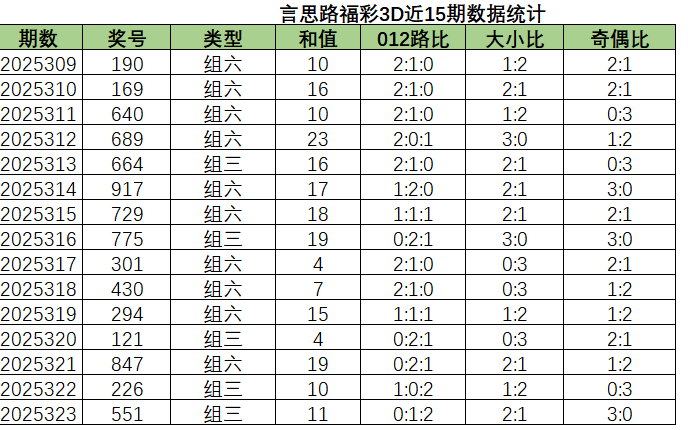 上期出的是组,和值是11,跨度4012路比012,大小比21,奇偶比30