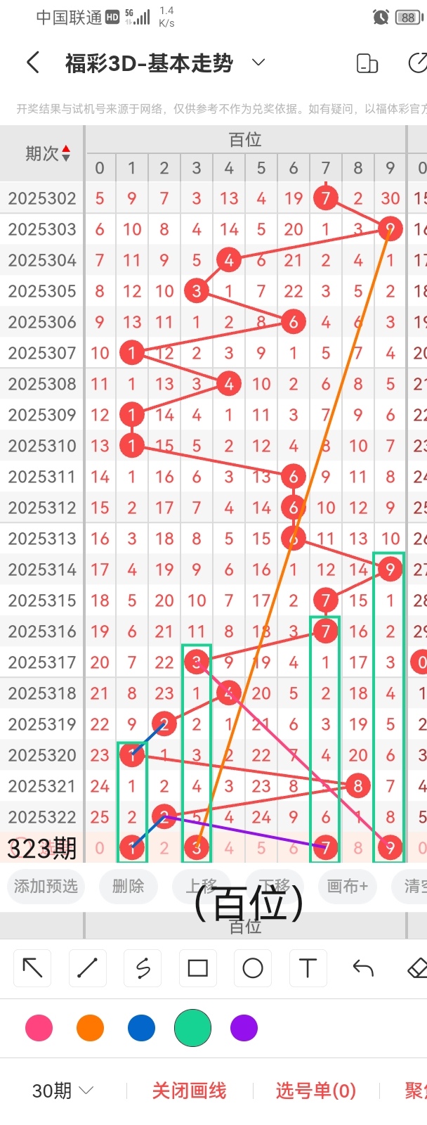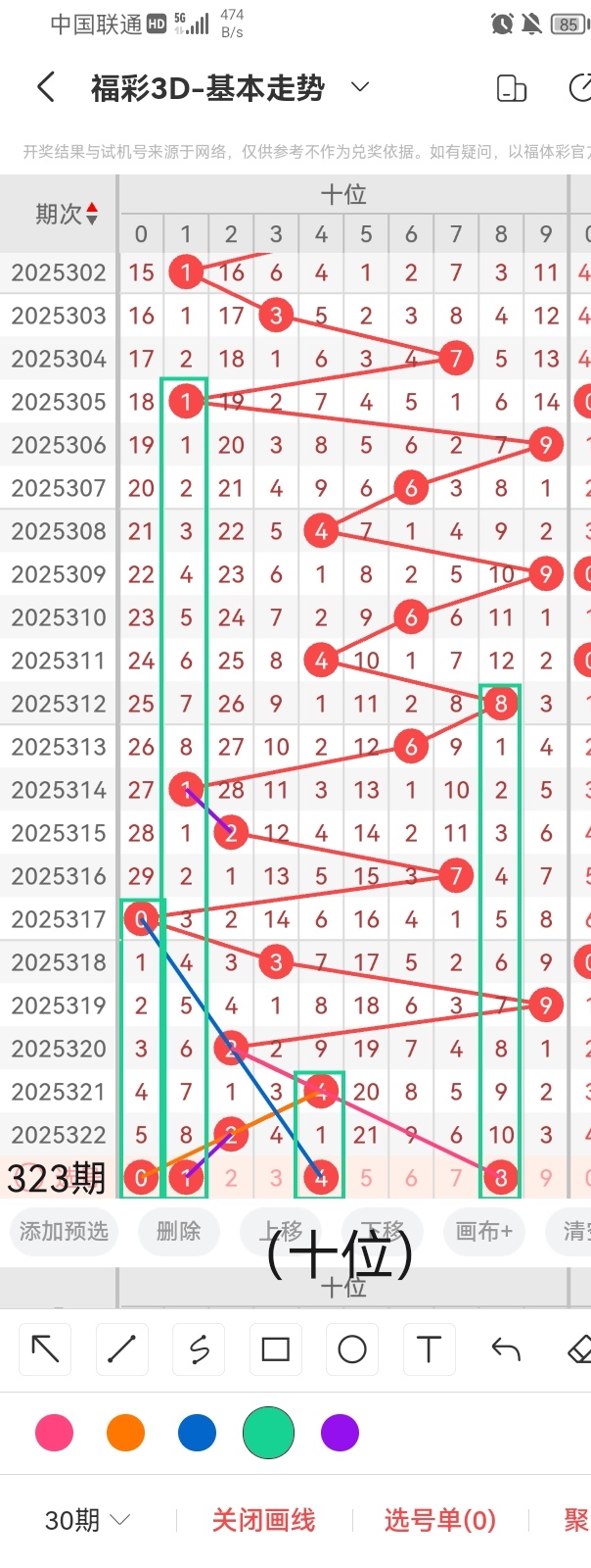 通过以上对上期的简单回顾,下面进入2025323期(下面简称本期)的选号分析: