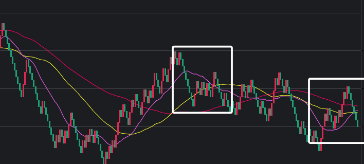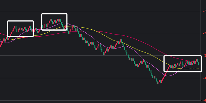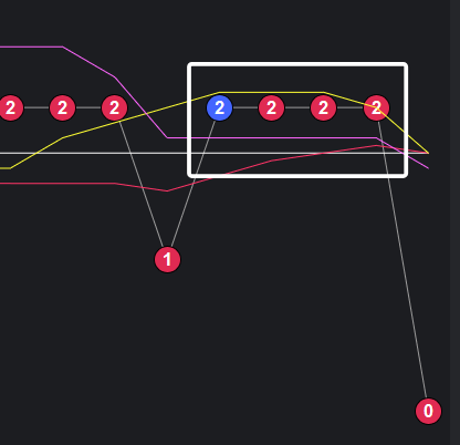 可以看到一些规律,在粉框中,如果一致,那么接下来这些跨度也会出。