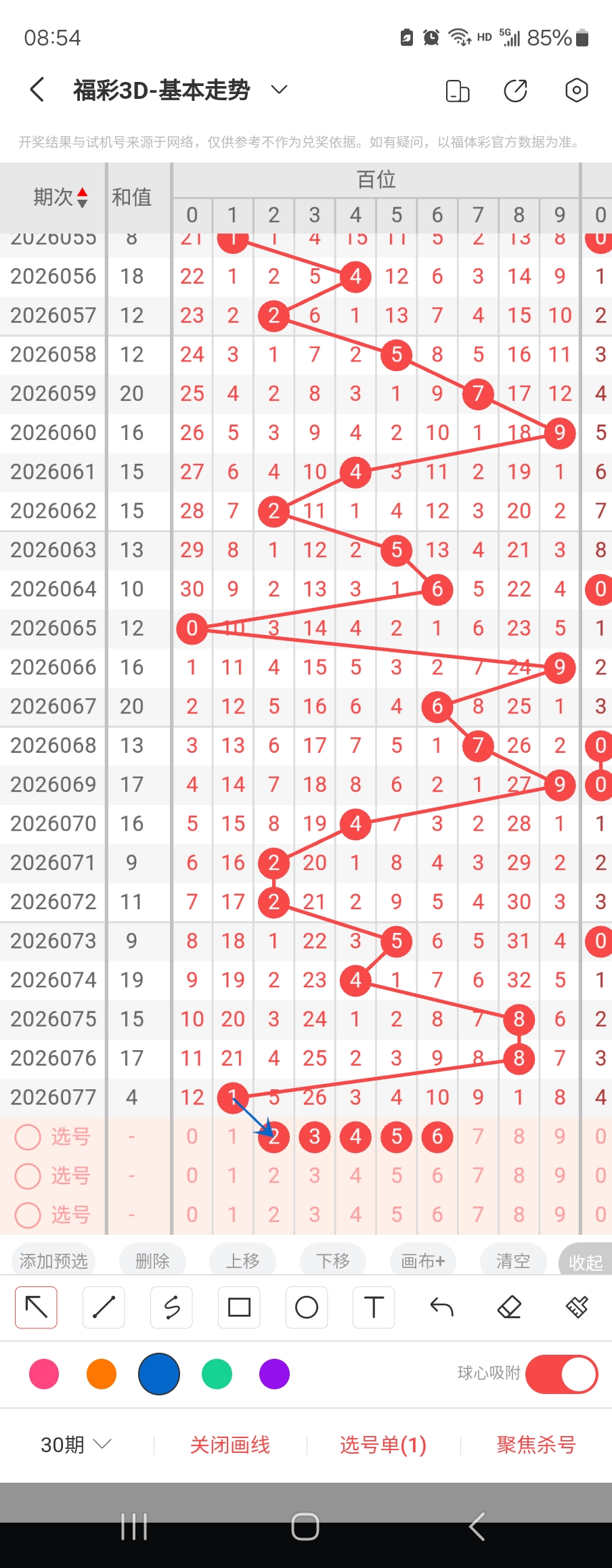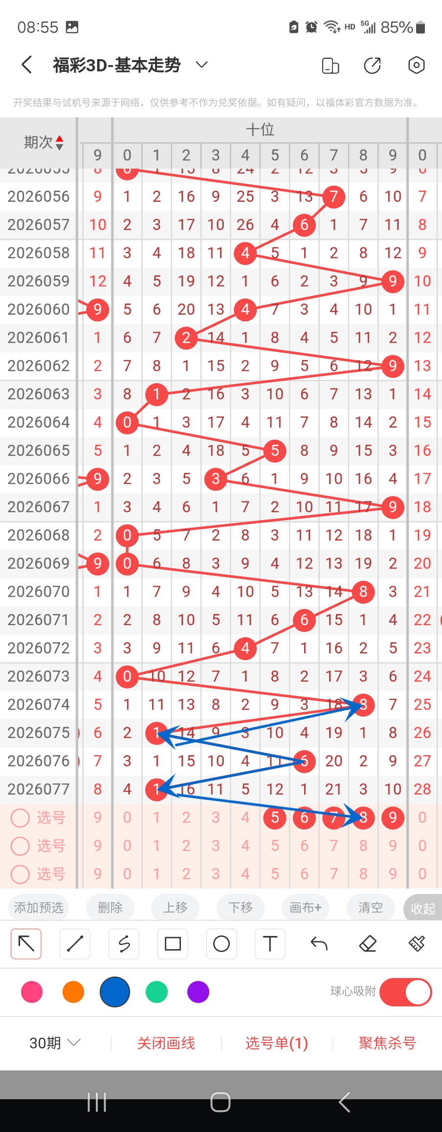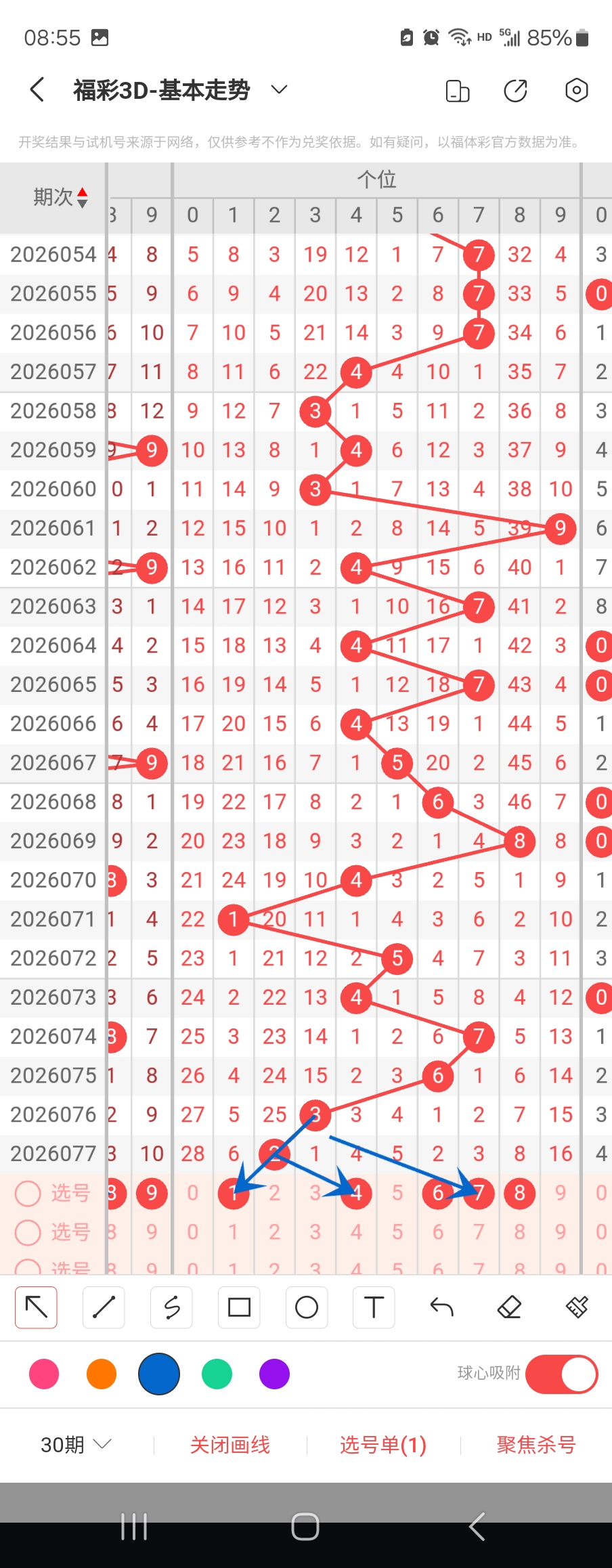 个位走势标注如下图;