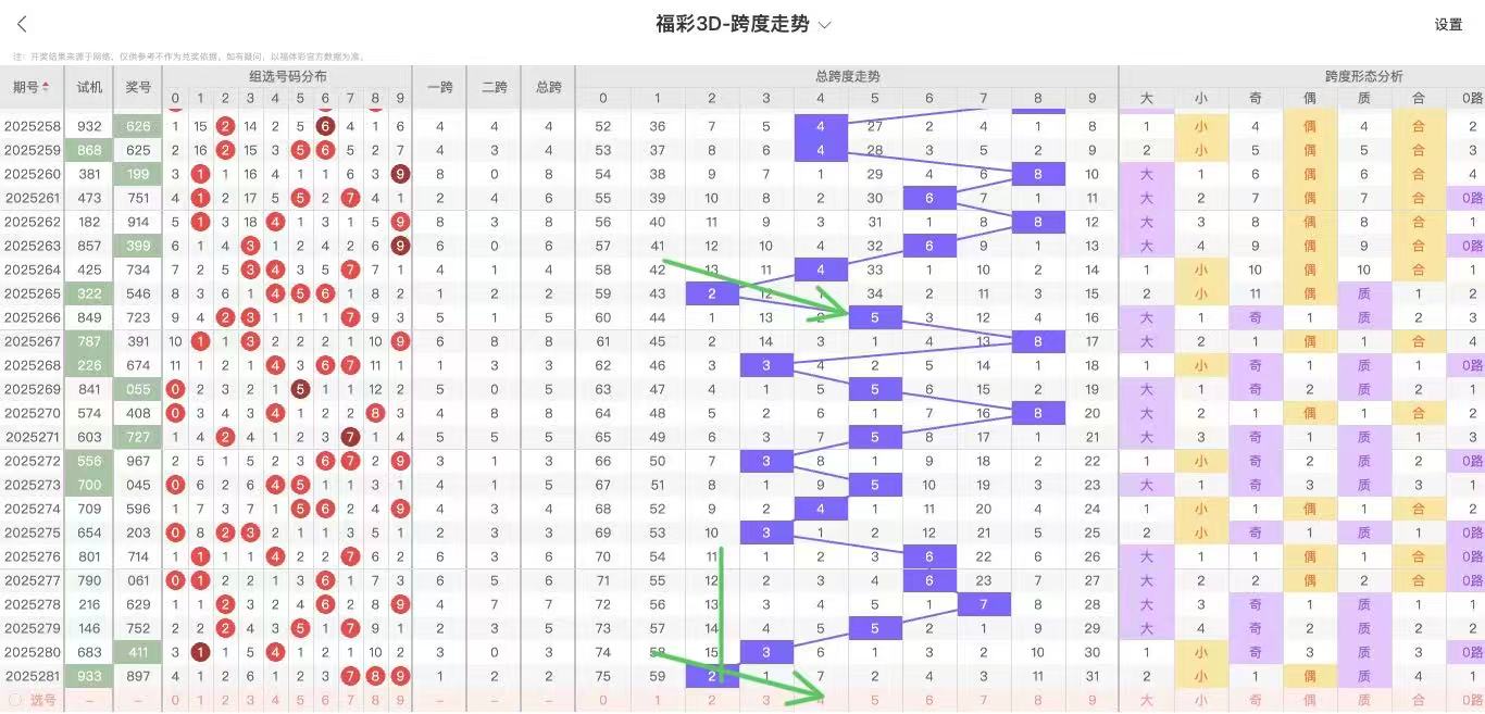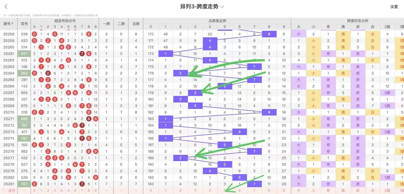 根据走势对跨度观察统计得到以下分析结果: