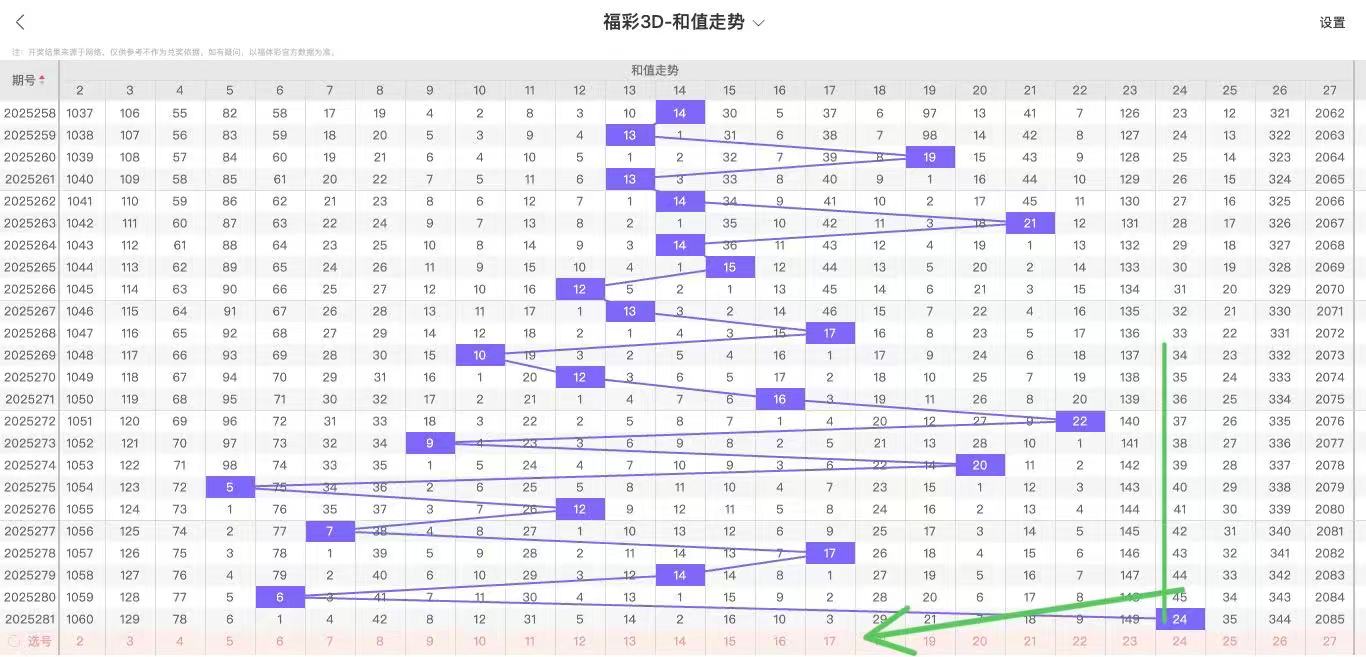 2025282期福彩3D和值走势图如下: