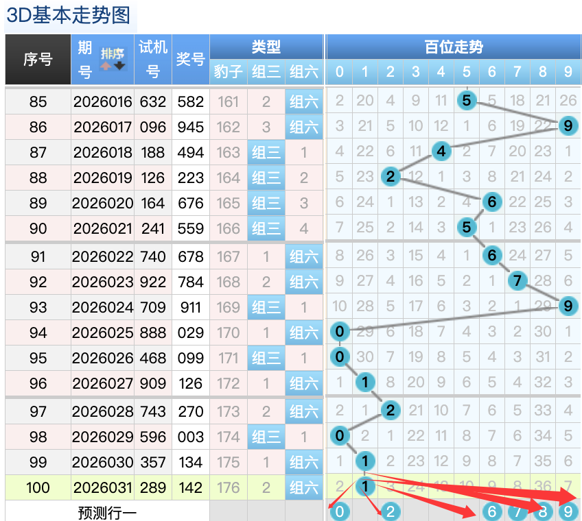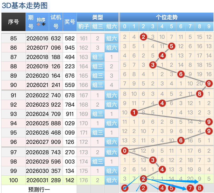 3D上期百位开出的1球,这个奖号是一个重码的回补落位趋势也是一个比较好的符合百位上的落位点,先来看3号球这里还是有机会继续走出一个2跨的冷回补趋势,还有一个就是0号球和2号球这里的两个分边号码的落位形态的概率在这里的机会还是很好的要注意防守,然后1号球这里要注意是一个重码回补落位趋势注意防守,8号球在百位上要注意可能有机会走最大冷码的落位注意防守 。