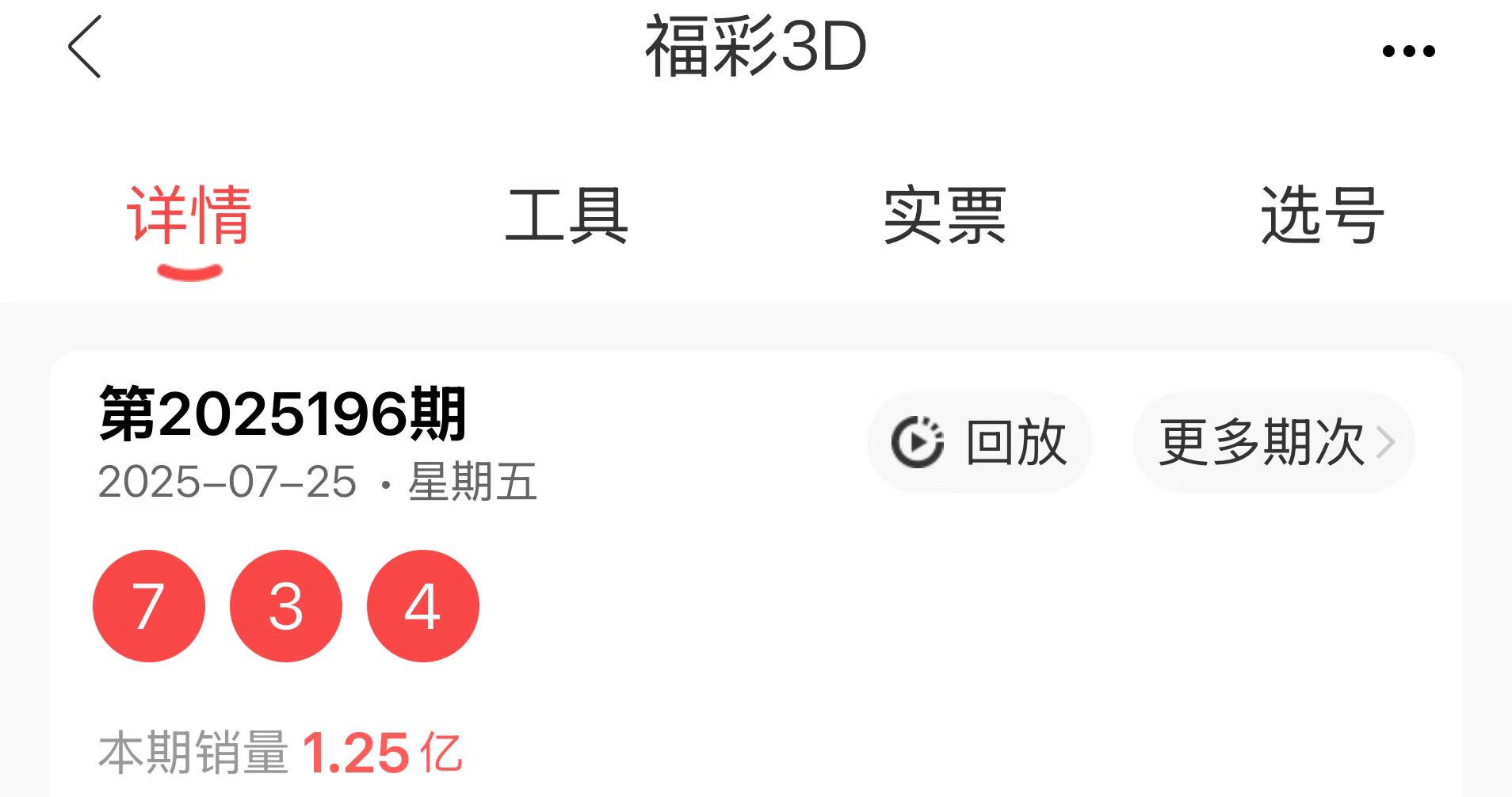 196期开奖号为734,形态组六,质合比2:1,和值14,跨度4,012路比为1:2:0,大小比1:2,奇偶比2:1