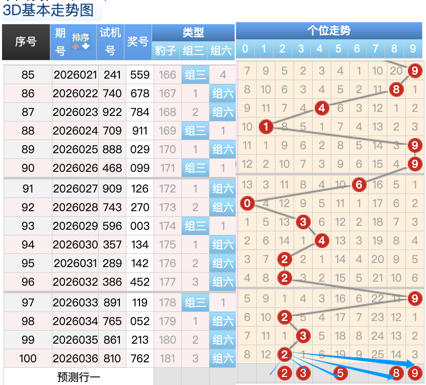 上期的3D个位开2号球,上期开出的是组六按照形态的话本期打组六形态小防组三,上期的2号球的落位是个位上的一个热码隔期的落位趋势,本期先来看3号球在个位还是有机会继续走出小号的落位点这里要注意是一个热回补小号落位,9号球和8号球是这里的落位点是两个小周期号码的落位点这里注意防守一码就好了也是这里的两码走势都是非常好看的注意选择一码,再看5号球这里注意是一个常搭配码的落位趋势要注意防守。