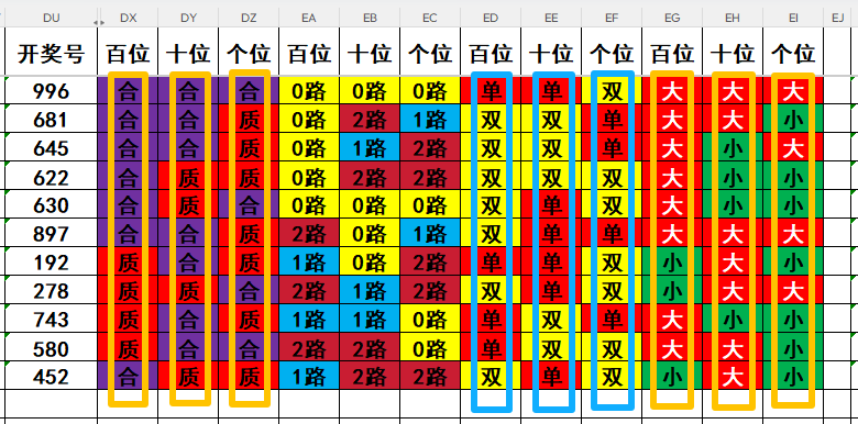 1,目前开奖号百位号码球11天当中,质数(12357)开出了4次,合数(04689)开出了7次,本期重点关注开奖号百位号码球质数的回补!