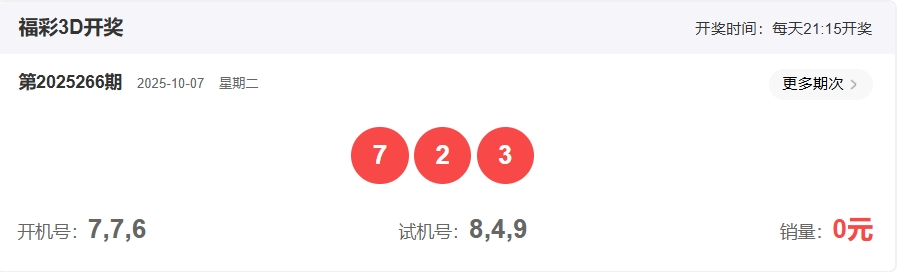 福彩3D第2025266期开奖723