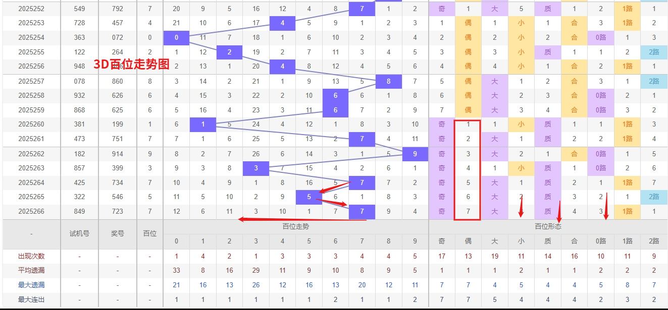 福彩3D百位分析:第2025266期百位开出号码7属于大奇数,从上面百位走势图上可以看出近100期大小比约为51:49奇偶比约为53:47。近期数据还是比较极端的符合文章开头介绍的求均衡规律非等量现象。但这种均衡不会持续最终会被偏态运行打破,然后循环往复。但短期内大小相差2点,小数过热大数有回补需求本期个人认为走大数的概率更高。上期百位落号“7”号球,在百位号码开出1路号码7后向大数方向走出2个振幅。那么通过分析上期百位落位号码分析,号码走出2个振幅,号码走为大奇数,开出1路号码7。通过对百位落号趋势来分析,百位号码落位后端,通过对近10期的走势来看百位号码大小交替频繁走2期大数又走3小数,最近小数比较强势,本期有走向小数号码的概率。那么本期我们在对百位号码进行分析时我个人的考虑百位号码会走出小数号码球,近期3D百位走势来看,号码0作为明显的冷号已持续多期未出,理论上存在较强的回补可能。冷号在经历一段时间的遗漏后,往往会随着号码的均衡性调整而出现反弹,因此当前阶段需密切关注0的回补信号,适当关注其解冻后的出现频率。另一方面,号码9近期表现活跃,属于典型的热号形态,热号往往具有持续走强的惯性,短期内仍有可能再次开出。但需注意,热号在连续表现后也可能出现短暂停顿,因此既要防范其持续热出,也要留意热极转冷的可能。综合来看,0和9在百位上形成冷热对比,结合走势分布与周期规律进行平衡布局,在追冷号回补的同时兼顾热号的延续性,我们在百位关注的重点在24069这5个号码球上,百位号码近期奇偶切换频繁,7号球码属于1路号码奇数,现奇数开出过多有向偶数的趋势。所以福彩3D第2025267期百位看好24069。本文由一起彩钱是生命动力所著,请勿转载