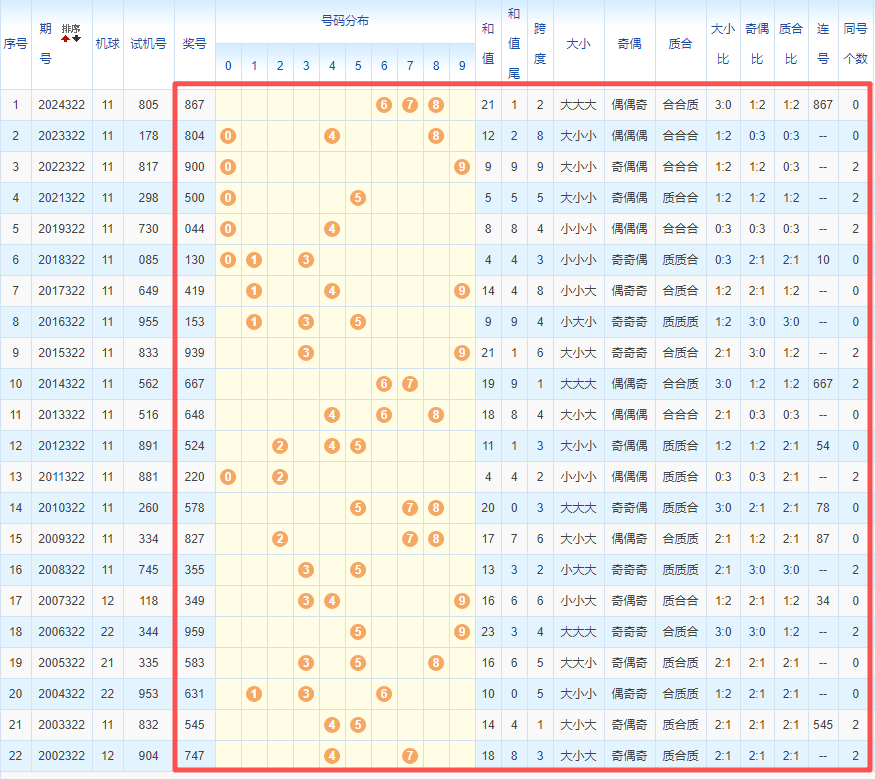 这22期大小比2:1趋势好,这期可以考虑选2:1。奇偶2:1趋势好,奇偶比可以考虑2:1