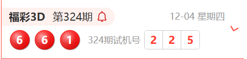 福彩3D第324期开奖结果为:661