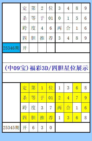 福彩3D第346期图文(中09宝),四胆推荐