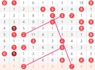 ①:本期福彩3D百位大小走势,根据图上标记的规律,最近五期内百位出现小后出大的规律,此规律已出现一组,如图上所示,据规律以及概率理论值来分析,本期百位开大号概率很大,所以分析本期百位开大号为主:56789