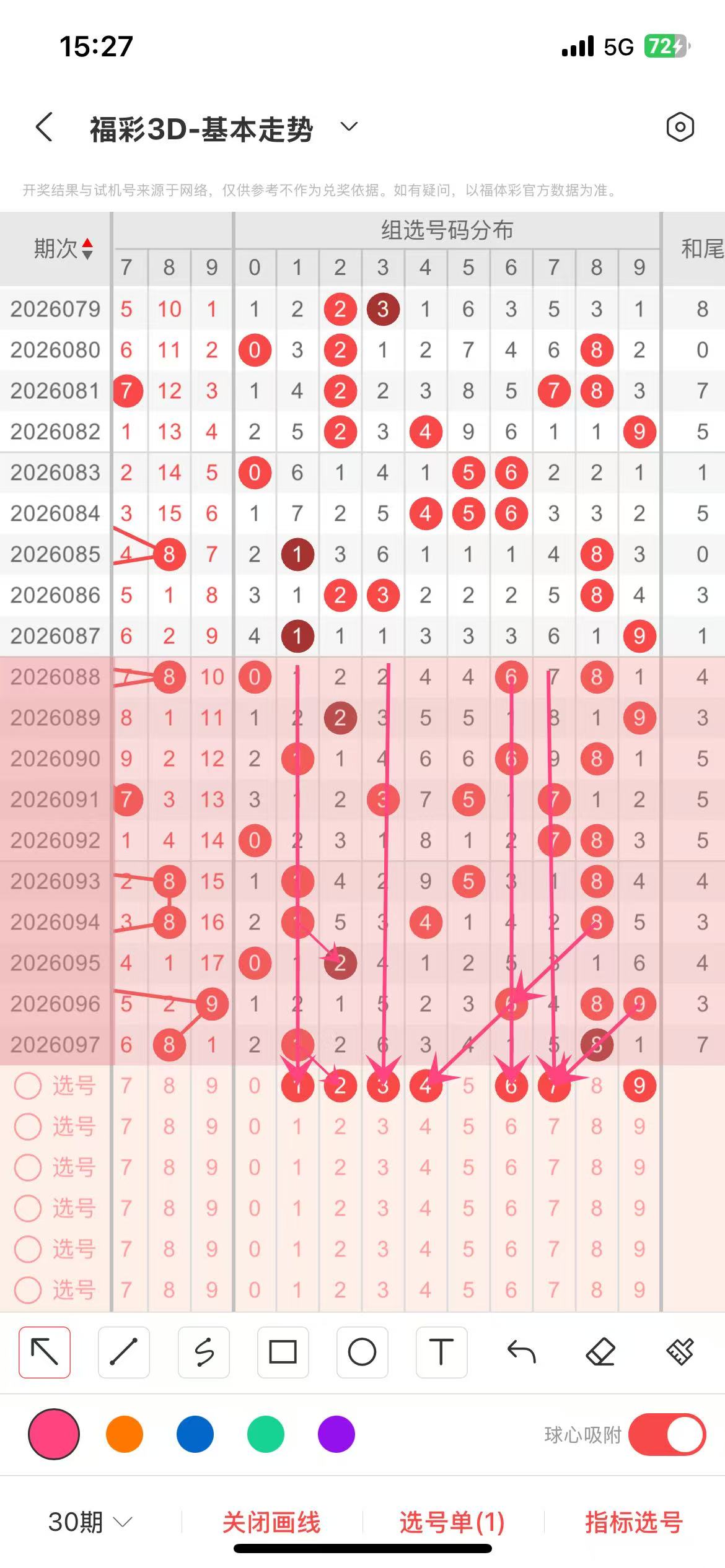 · 冷号:3和7已经连续5期遗漏,是最冷的两个号码,下一期回补概率很高。另外0、2、4、6、9只出现1次,也有补缺机会