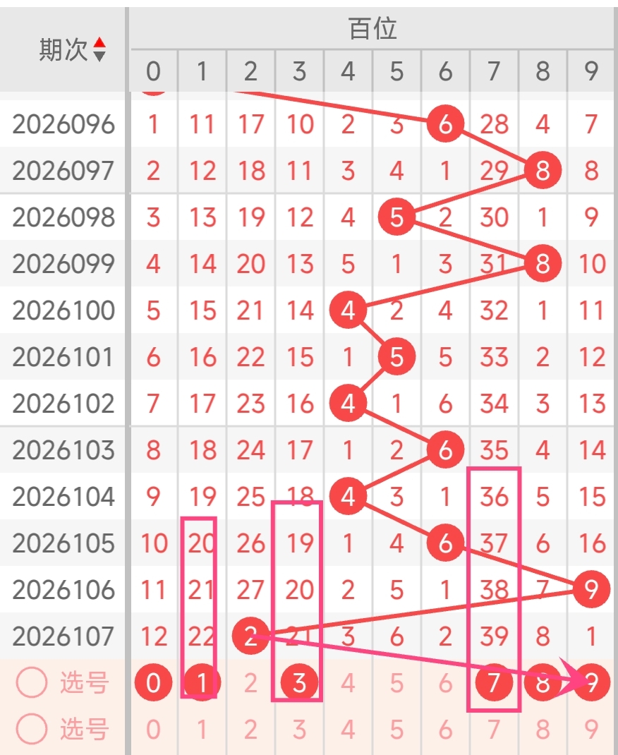 上期百位开出号码为2,振幅下降了7点,开出了小数号码,偶数号码。根据近期百位号码走势图来看,上期百位号码上回补冷码2开出,本期可以继续重点关注冷门开出,如号码1,3、7冷门号码已经多期未开,本期需注意回补。近期百位上开出多为隔码开出形态,本期需防隔码9开出。结合近期冷热号码和多期遗漏号码。