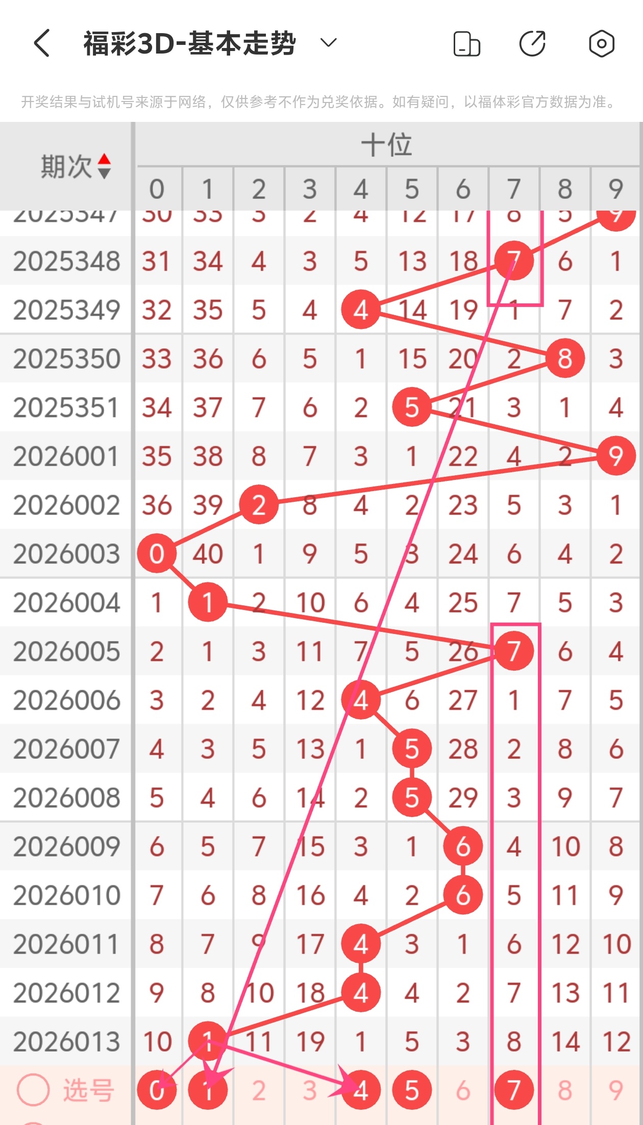 下面是福彩3D的十位走势图分析
