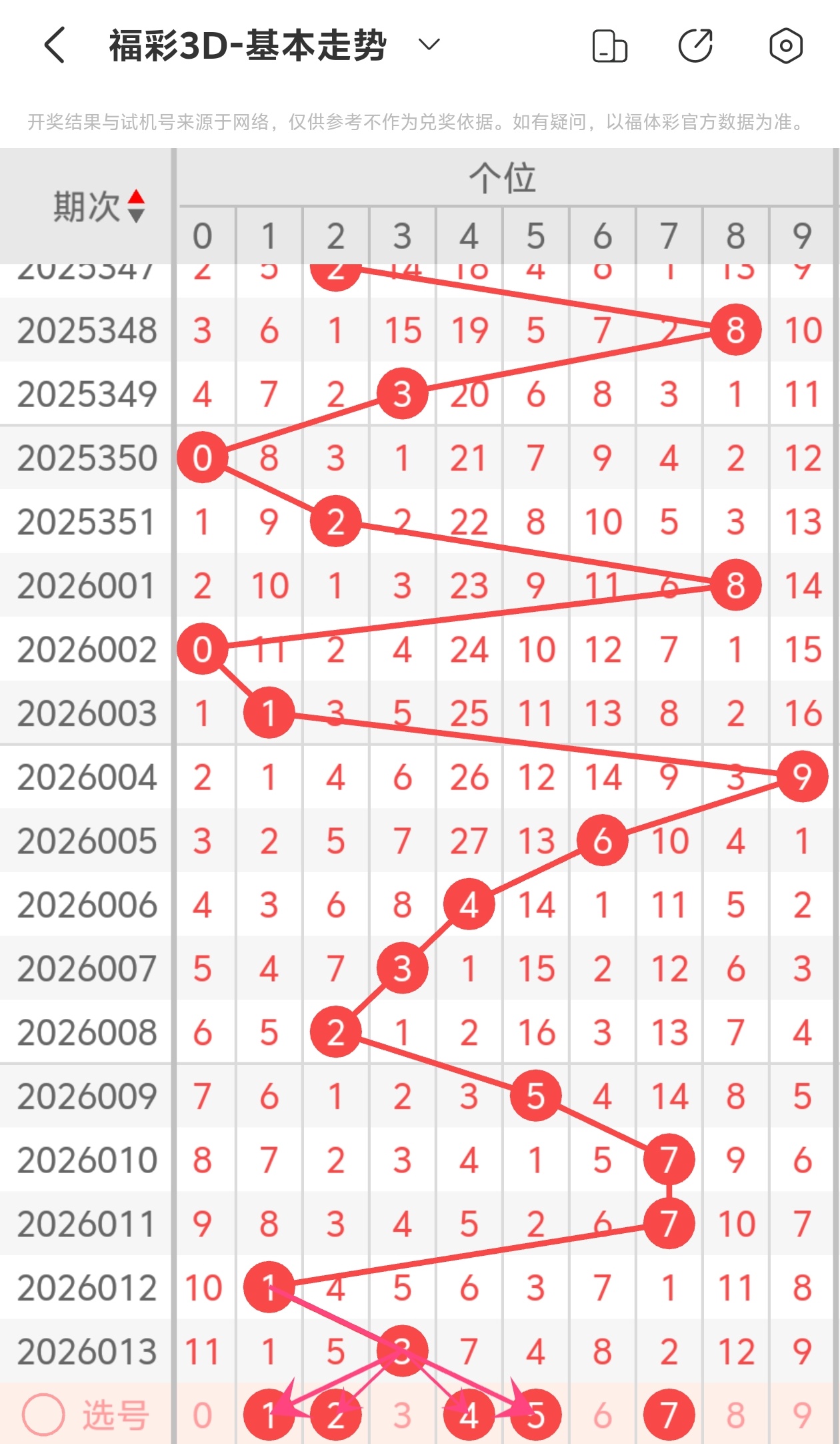 下面是福彩3D的个位走势图分析