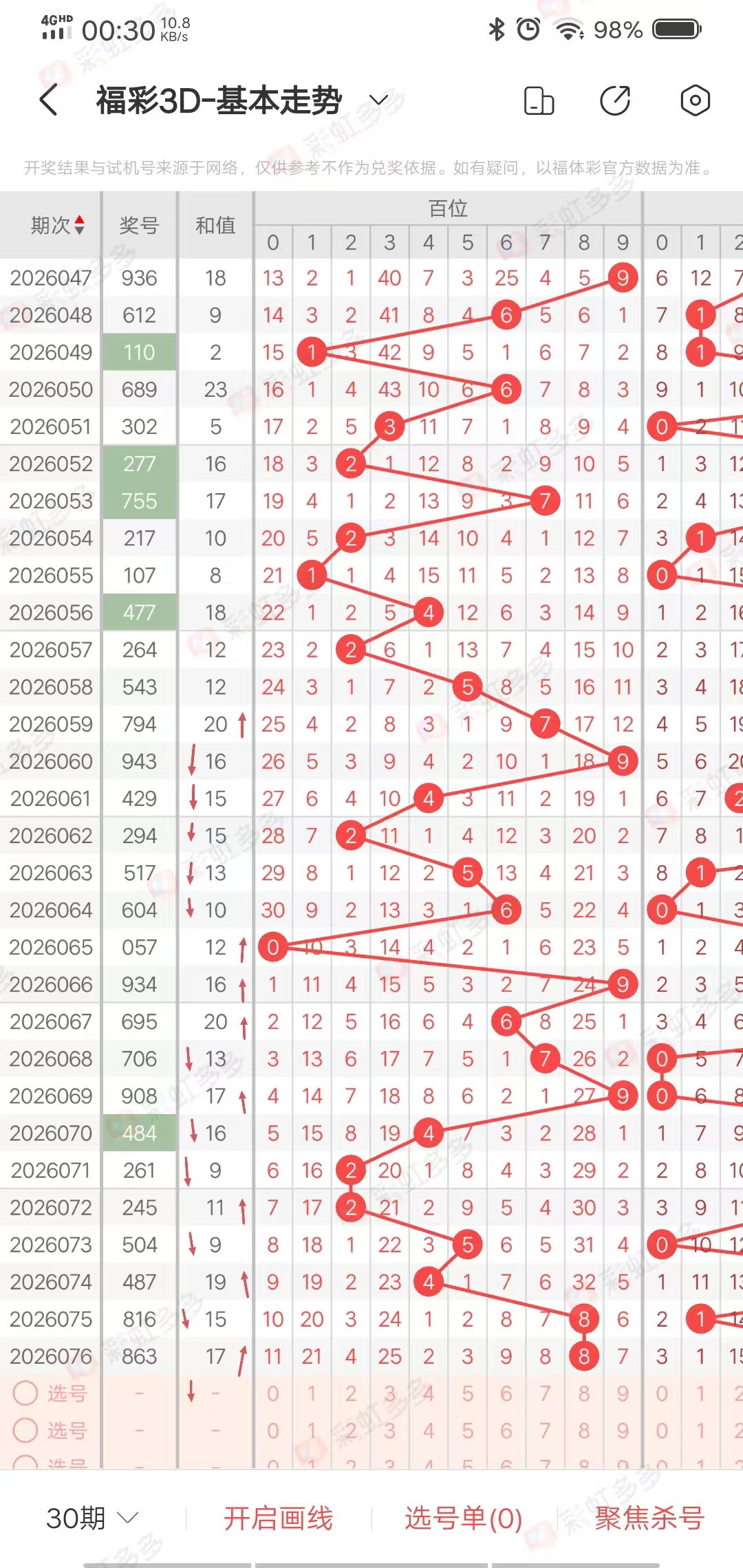 从走势图近30期看,近30期和值12路出号走势0022212,120,0021,0011,012,1210,201,02