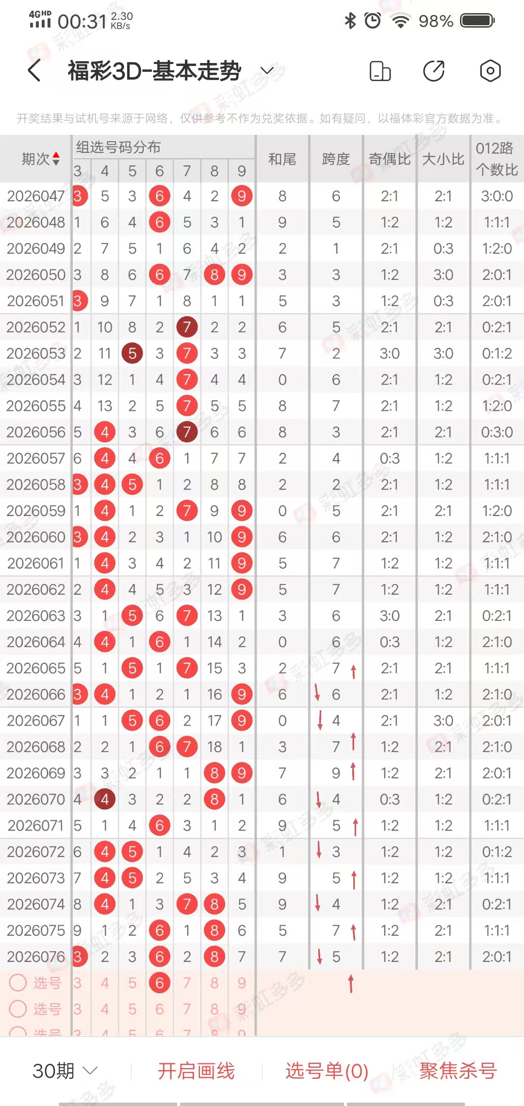 从走势图近30期看,近30期跨度012路出号走势0210,02,201,0122,011001011,012,021,12
