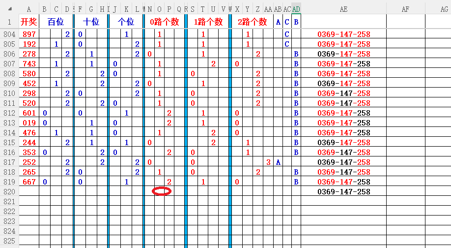 如上图2,012路分析01路尾走比较好,关注0369147尾;