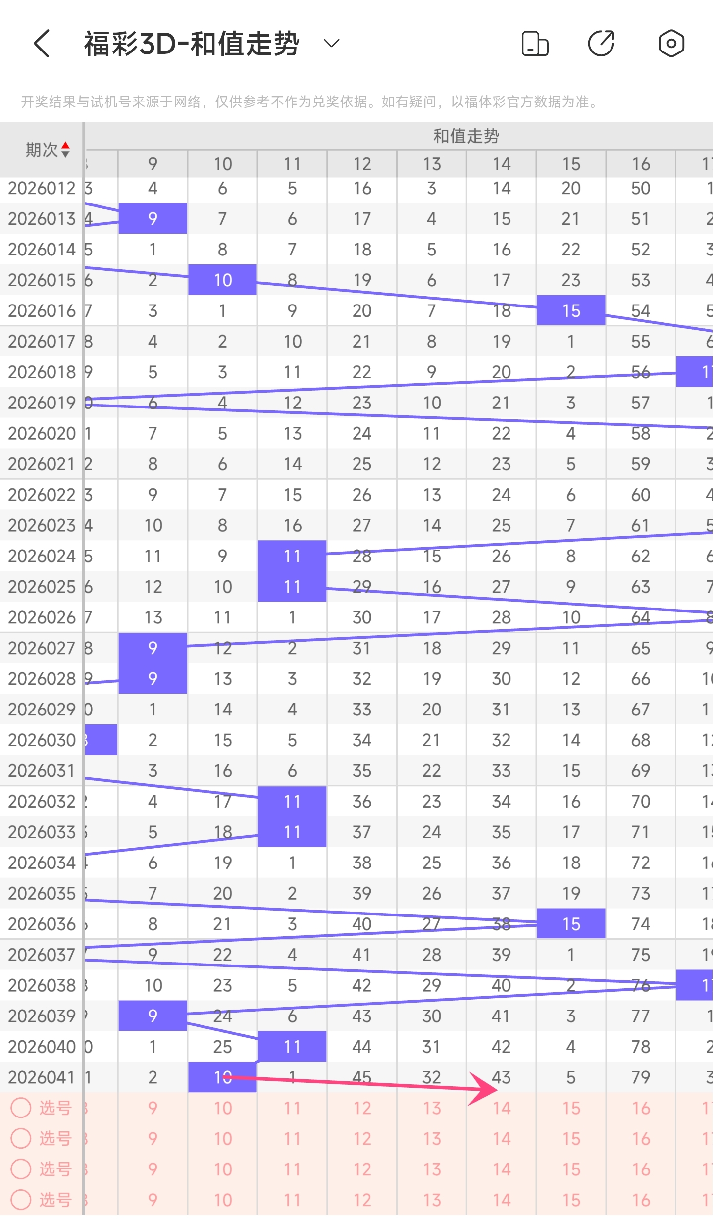 一、通过和值走势分析: