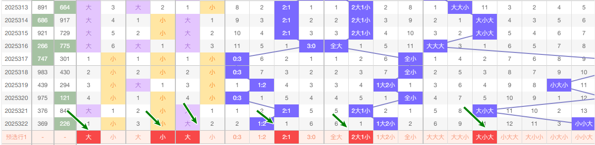 最近的5期当中个位大数出现的频次2次 小数出现3次 ,趋势平和 本期看好继续走大