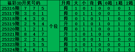 综上所述,福彩3D第2025325期号码推荐: