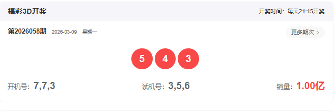 开奖号码:543