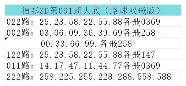 3.最后,大致上的常规走势是012路—组三—断路组六的顺序。所以,012路小概率关注,组三需要重点关注。尤其是双0路,双2路,000路,111路,222路的组三。
