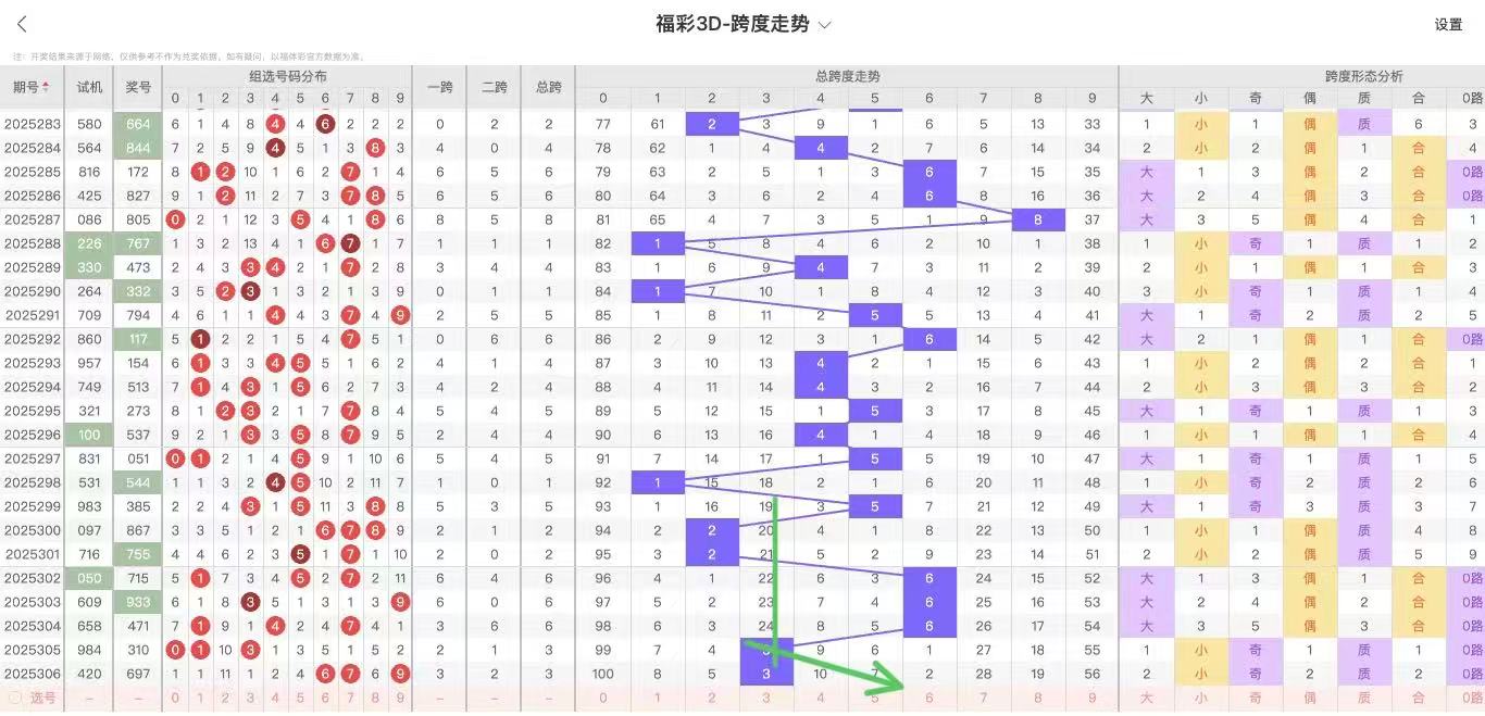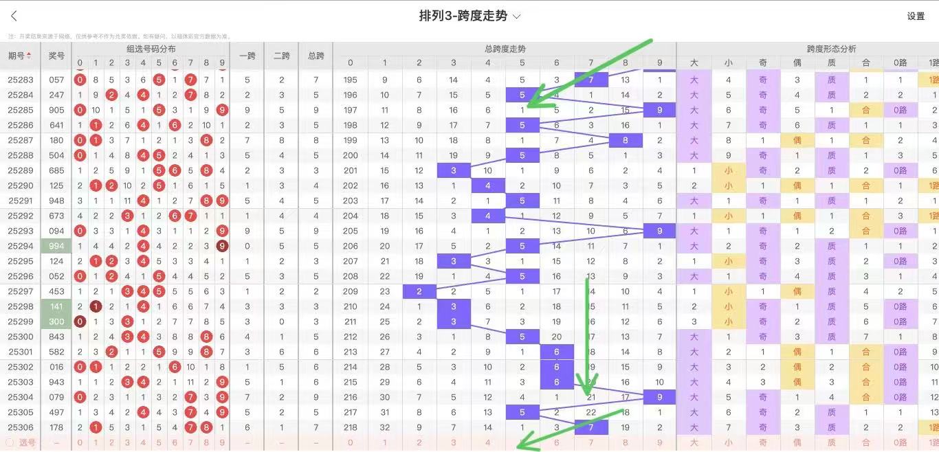 10期内跨度走势为:2-3-3-5-6-6-6-9-5-7,10期内大小跨比:5:5,奇偶跨比6:4,百期内跨度7共开出的11次,下期数据:4 6 3 3 3 2 5 2 9 5 近期度较热,考虑跨度7开出后容易出大跨度,近期大小规律下大:偶:合,所以接下来继续大跨,偶跨度表现!