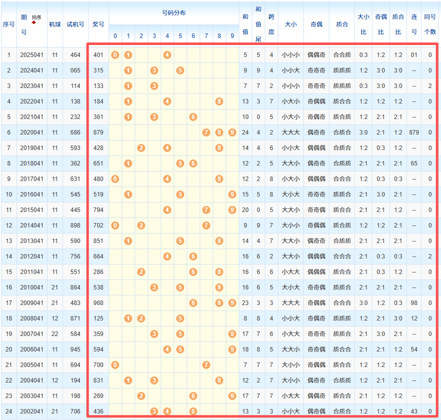1、统计往年同期开奖号码