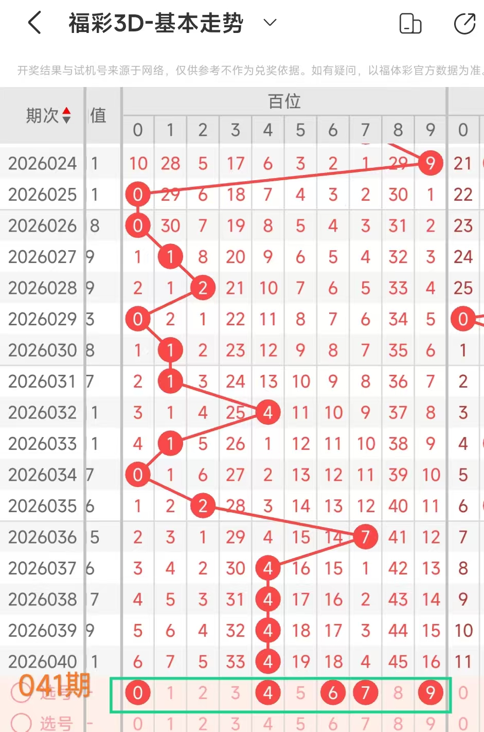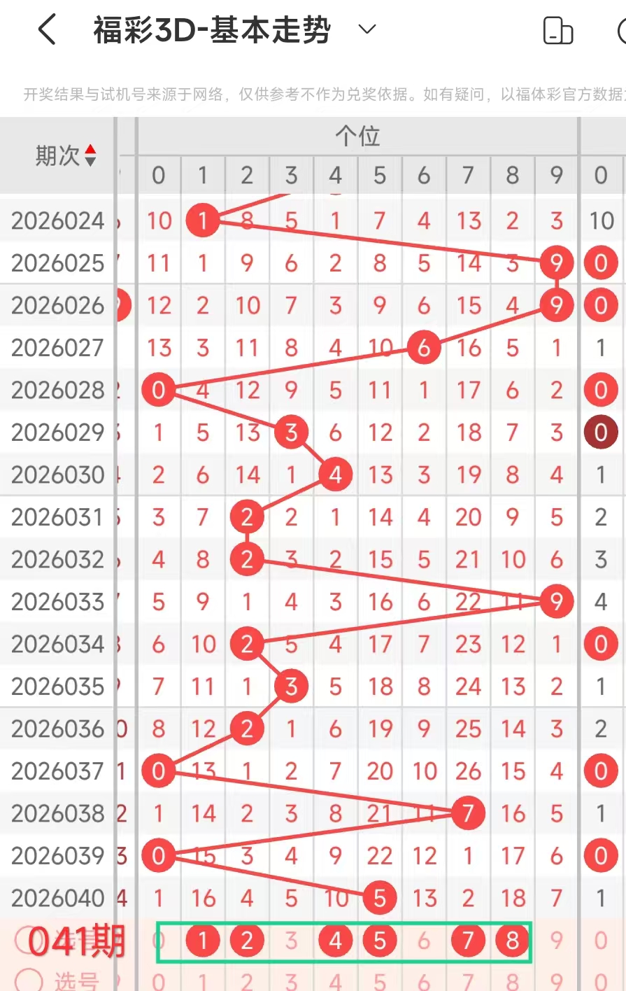 1、当百位开出4后下期开出:33122221444,经统计0号出0次、1号出现2次、2号出现4次、3号出2次、4号出现3次、5号出现0次、6号出现0次、7号出现0次、8号出现0次、9号出现0次。观察发现1234号出现频繁,本期可以考虑。