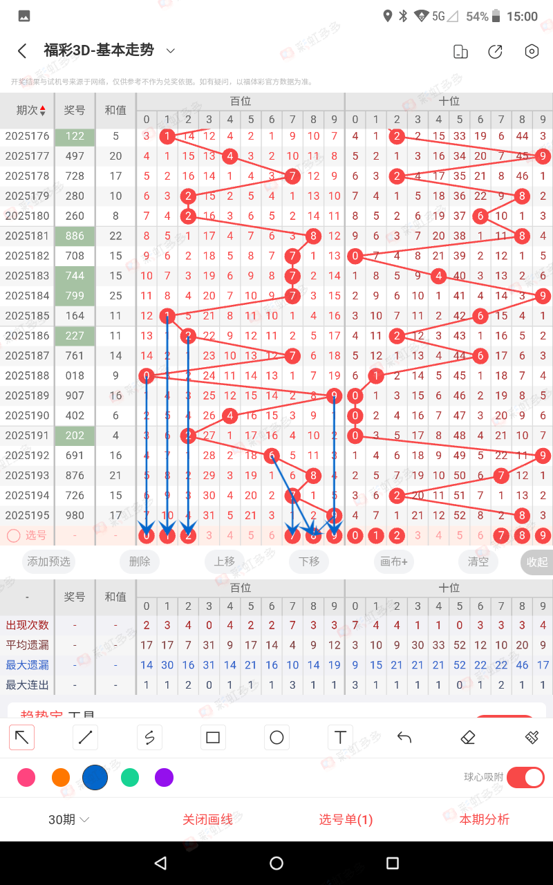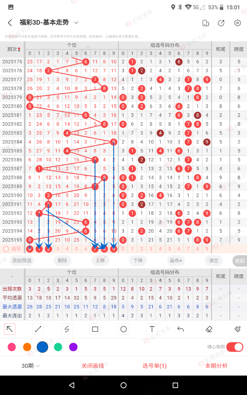首先来看我们上期195期的开奖号,980组六形态, 17和值