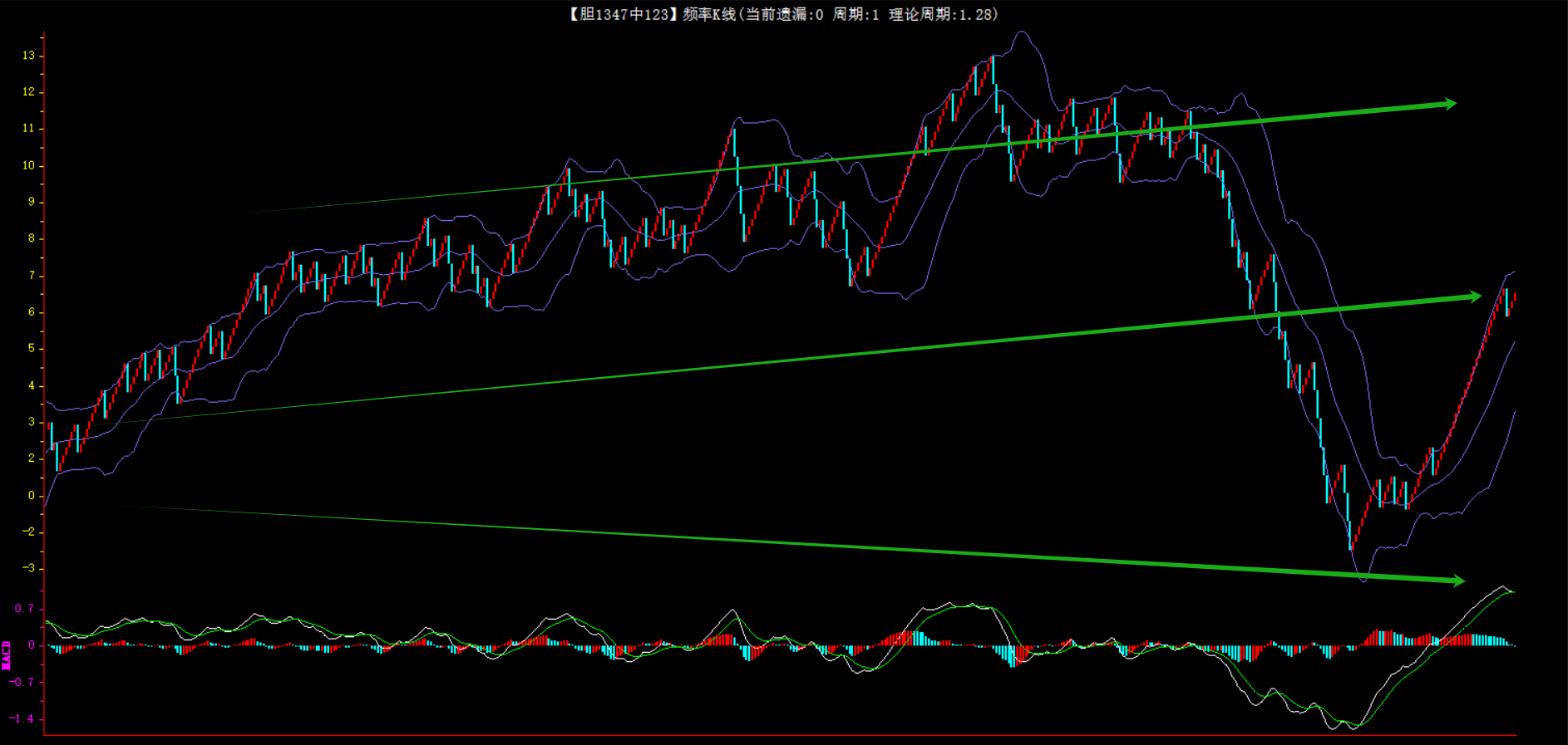 整体趋势上行,上边沿线趋势向上,下边沿趋势也是向上,节点震荡,当前开1期,本期关注。