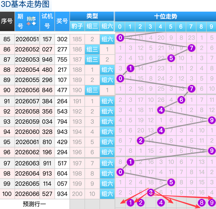 上期3D十位开出的奖号是3号,上期在十位上3号球这个号码是一个冷号码的回补落位点,本期来看1号在十位上要注意这个号码是有机会继续顺着上期的3号球继续走出等差号码的落位趋势这里的号码回补的落位形态注意防守就好,再来3号球这个点位注意防守走出重码的落位趋势。8号球和9号球的两个大号码回补要注意参考选择一码。