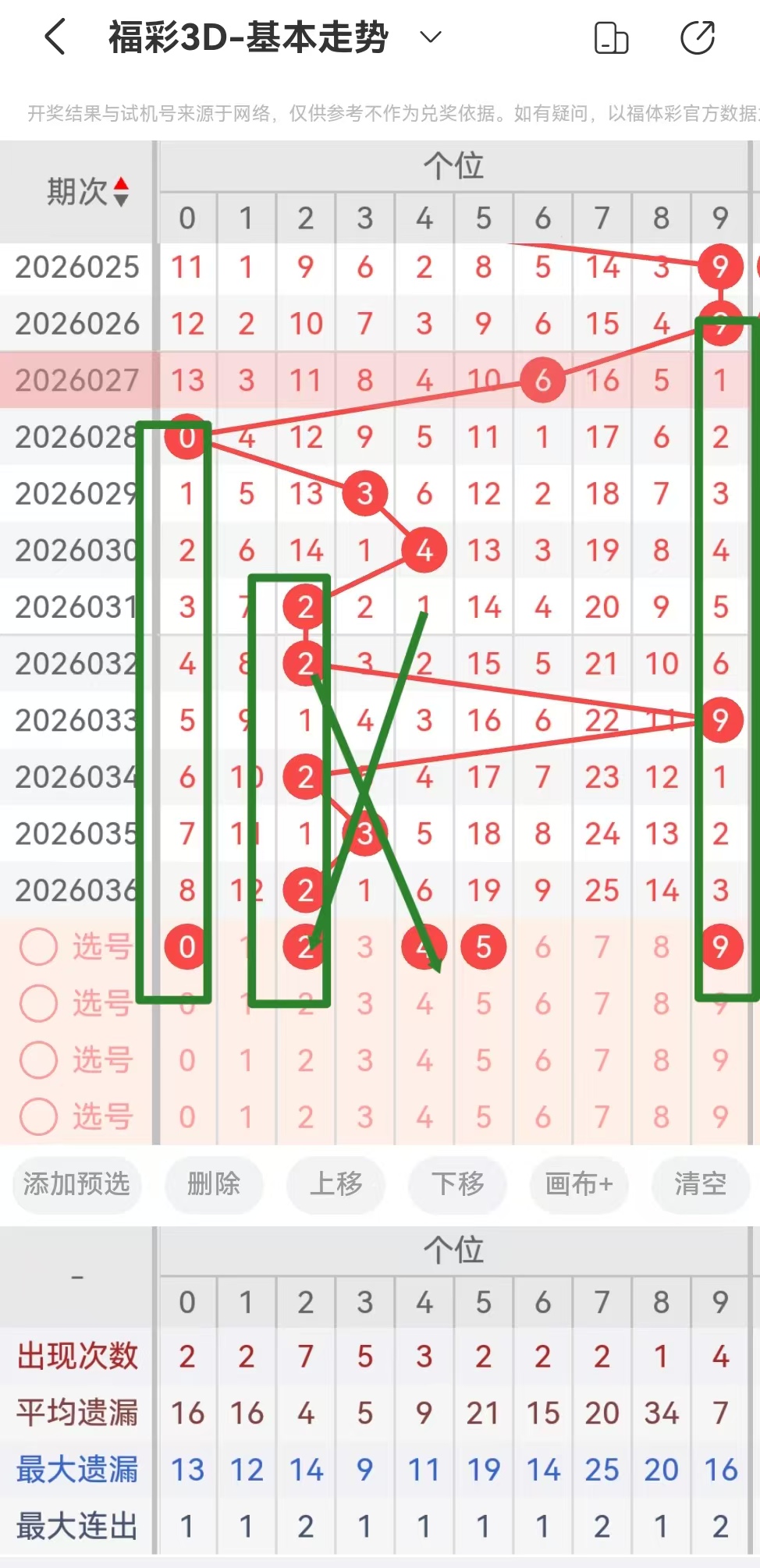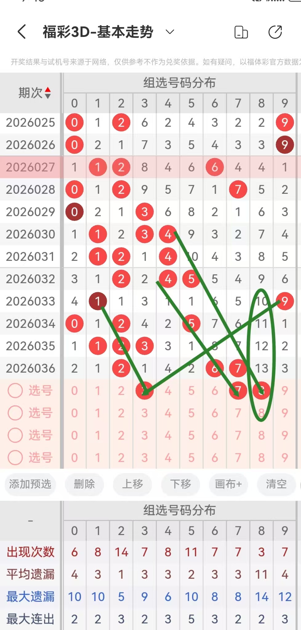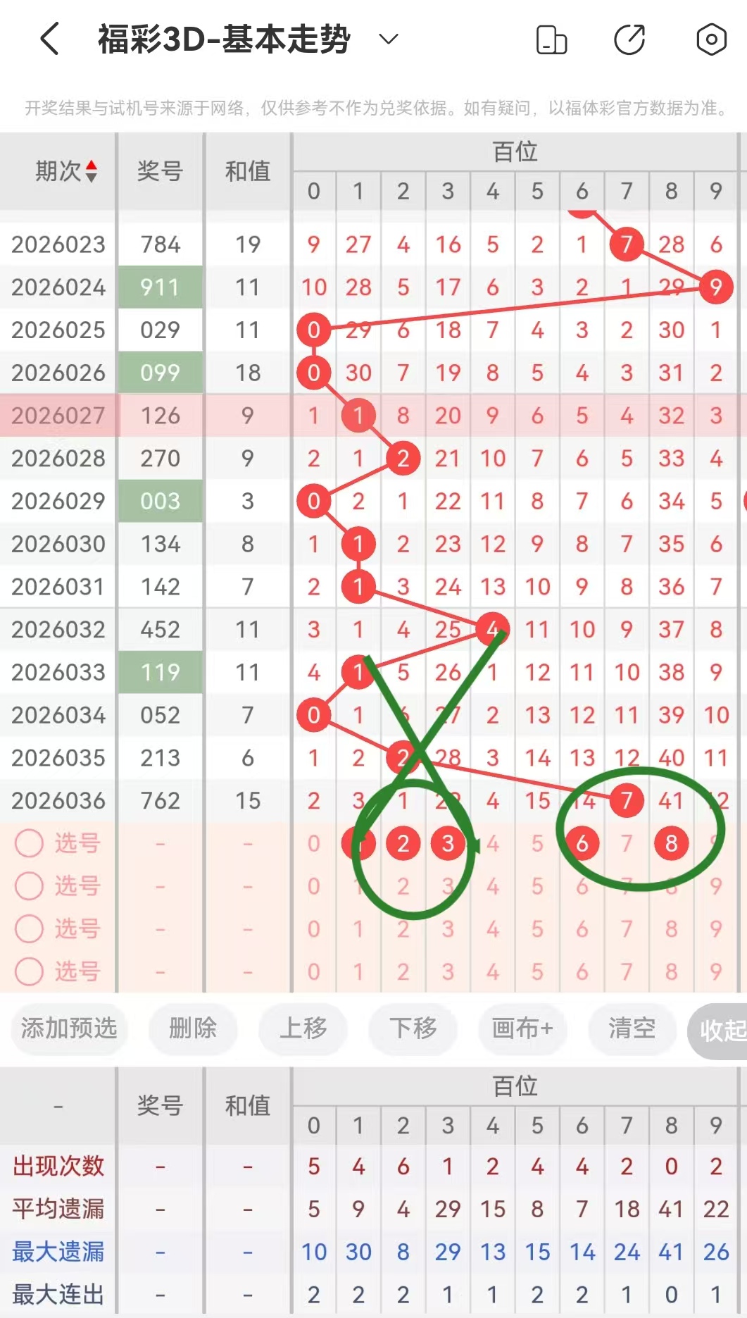 从2026036期开出的号码来看个位十位百位的号码球遗漏期数,以及个位十位百位的号码球走势!