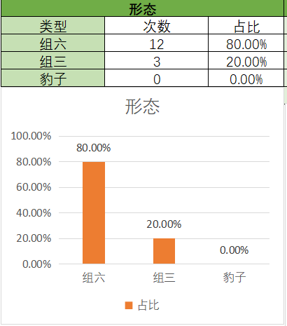 上期开的是组三,组三占比变大,组六占比变小。通过图示可以看到,组六在15期内开了12期,组三开了3期。本期关注组六,防组三。