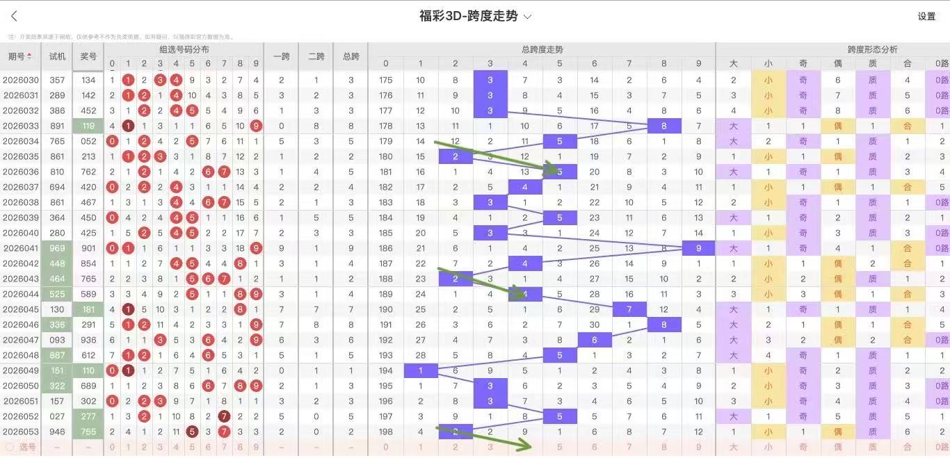 2026054期福彩3D跨度走势图如下: