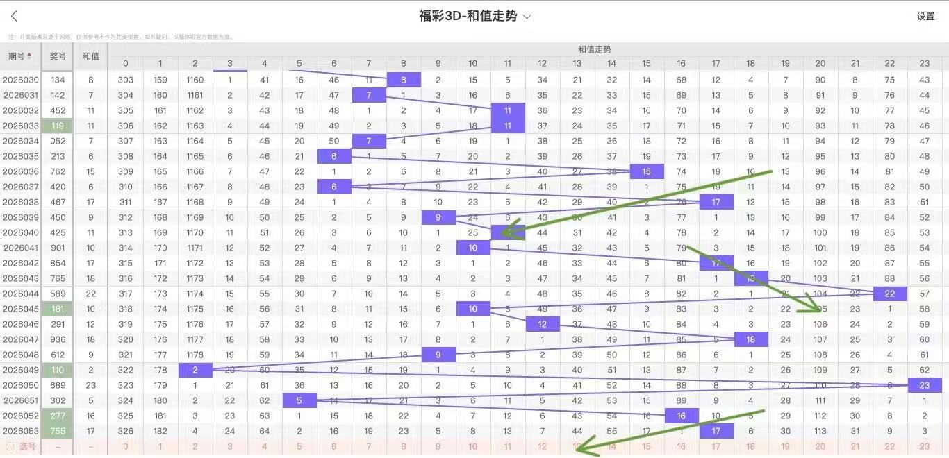2026054期福彩3D和值走势图如下: