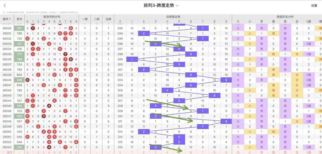 根据走势对跨度观察统计得到以下分析结果:
