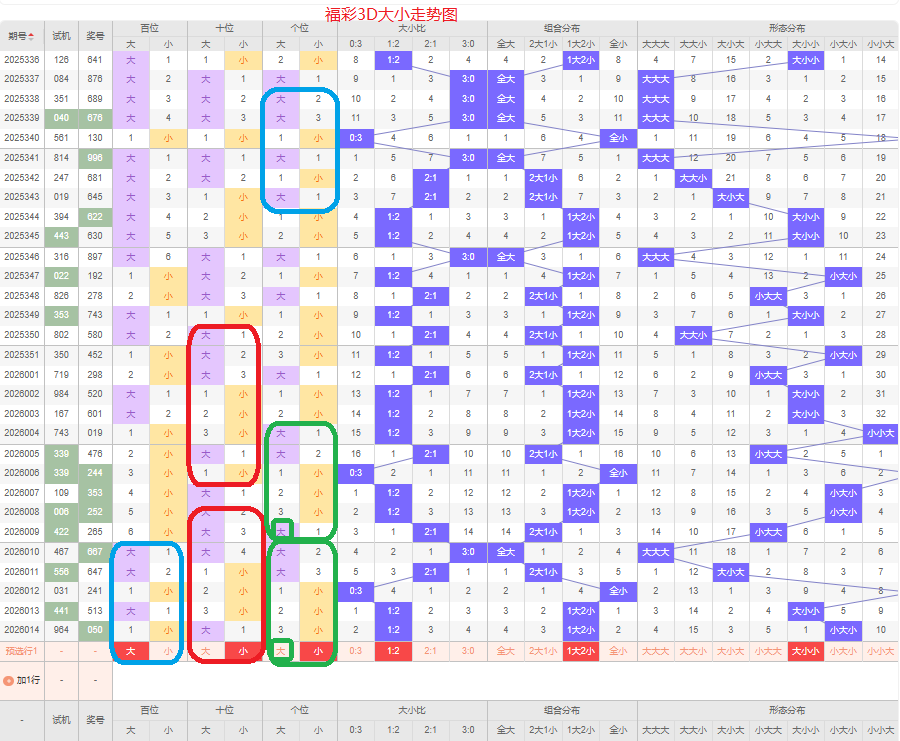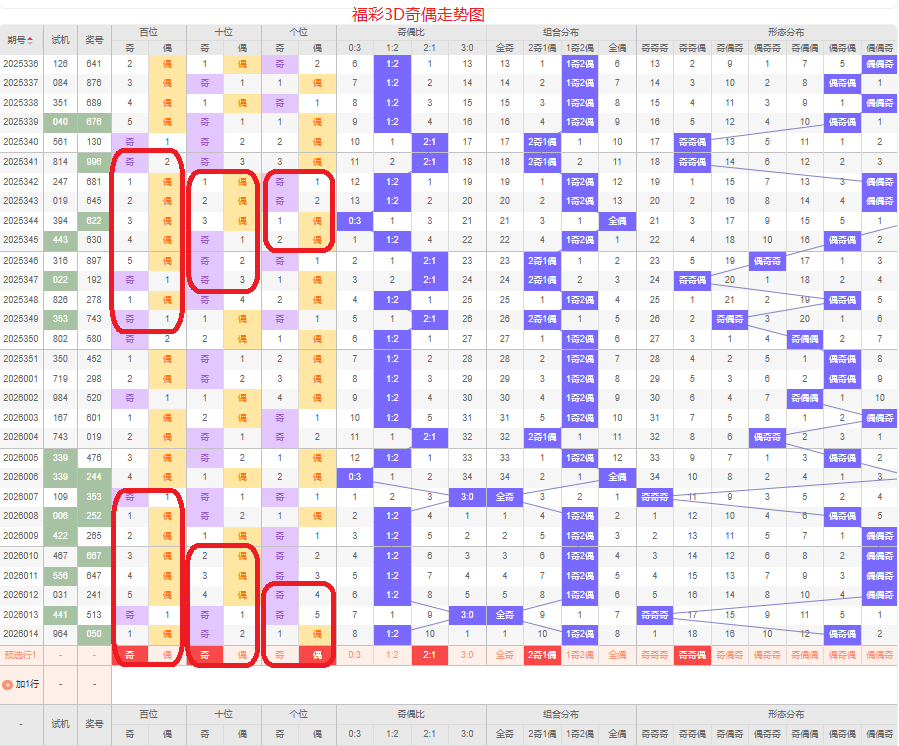 百位近期号码基本在0到6的区域,侧重大号码,侧重奇数的号码,侧重0路和2路的号码,侧重号码04567。