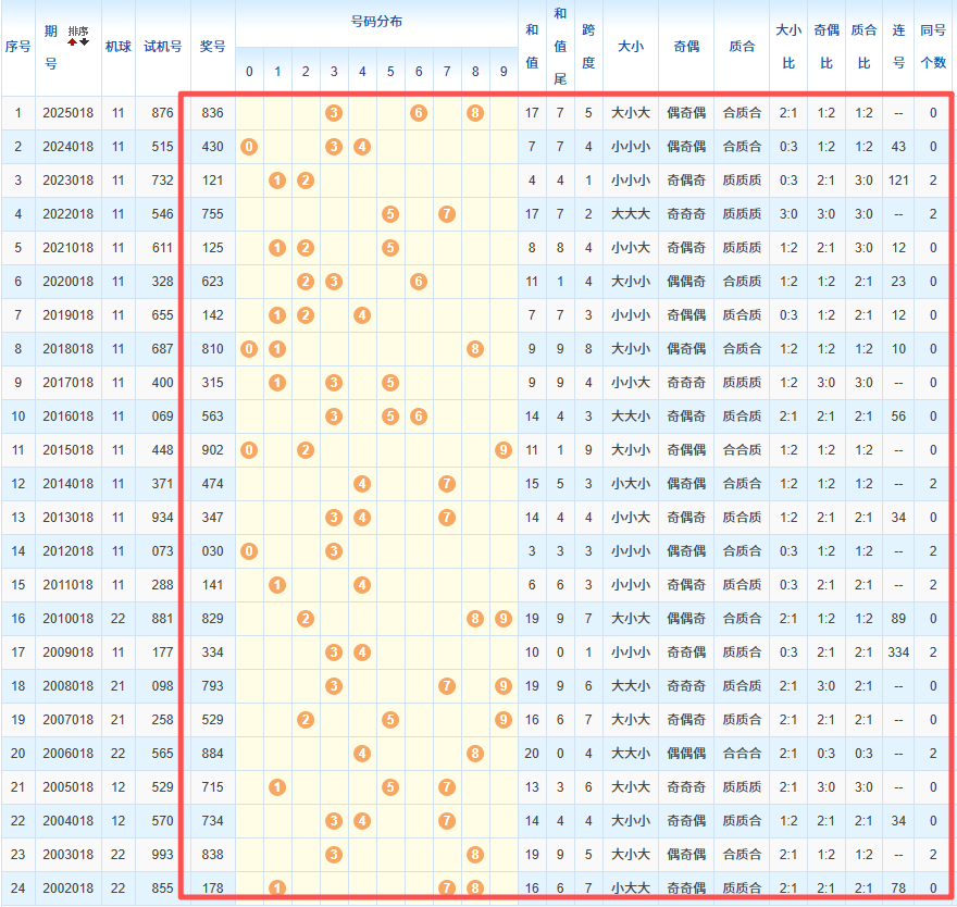跨度走势34567趋势好,这期可以考虑34567跨度。