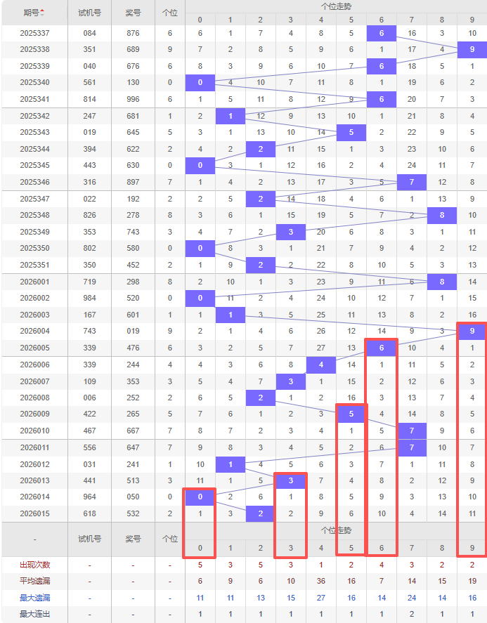 上期个位:2,近10期个位出号:4 3 2 5 7 7 1 3 0 2。最近10期大小变化分别:小小小大大大小小小小,奇偶变化分别:偶奇偶奇奇奇奇奇偶偶,质合变化分别:合质质质质质质质合质,根据近10期规律本期综上所述个位出号推荐5个号码:0 3 5 6 9。