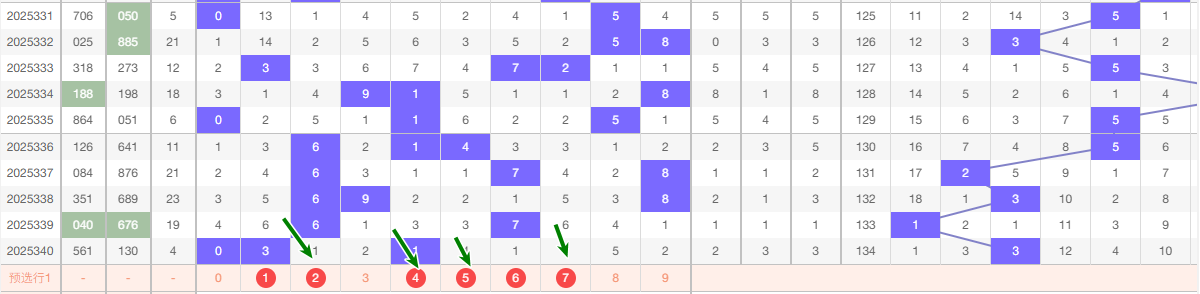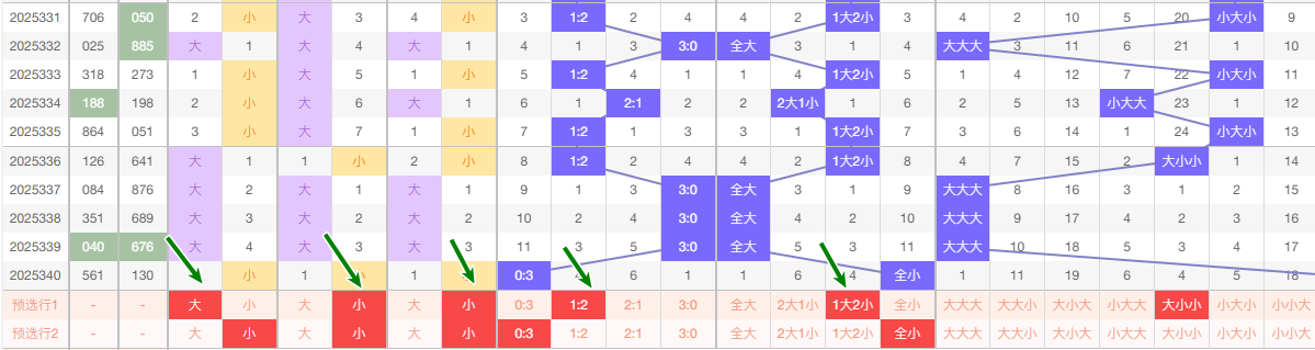 最近的5期当中十位大数出现的频次3  小数出现2 趋势平和 本期看好走小