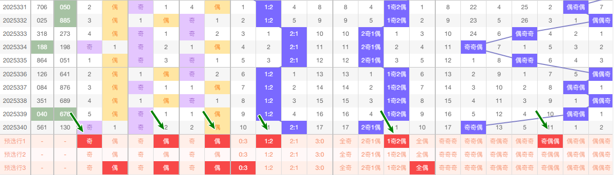 (二)、奇偶分析 奇数 13579 偶数 02468 在这5期 数据中 奇数出现6  偶数出现 9  从昨天出号来看偶数占优, 本期还是看好奇数有号  看好