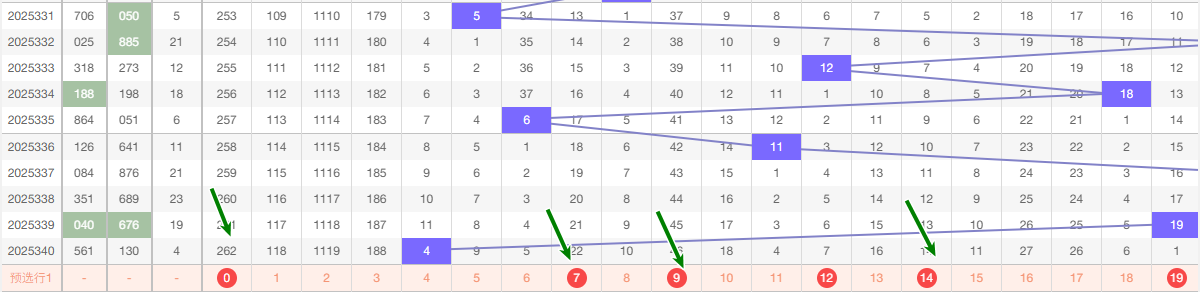 (二)、十位号码走势分析      上期十位开出3,本区与上期的跨度为4,本期我们可以从上面走势图中看出选号的思路,本期十位推荐关注:012569
