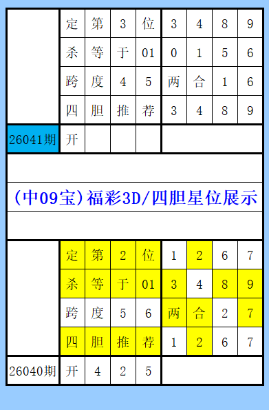 福彩3D第041期综合图文(中09宝),单选推荐,上期单选中2Dx25