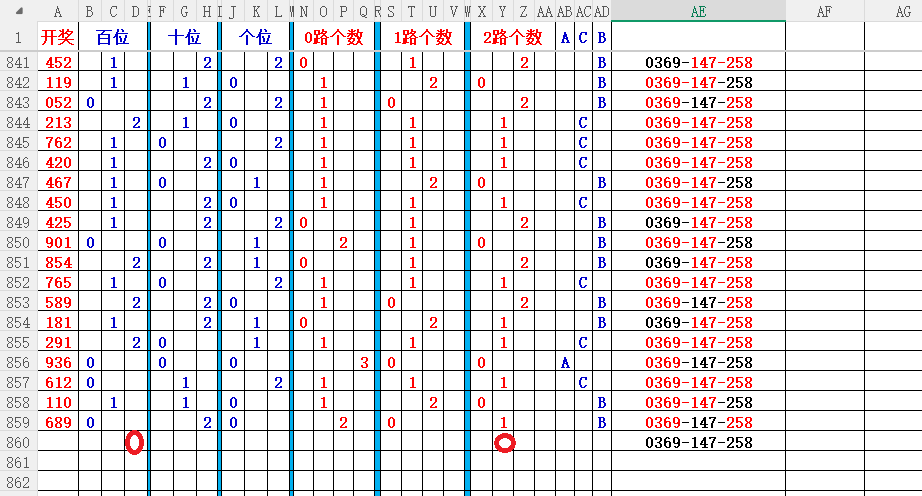 如上图2,012路分析,01路尾走比较好,关注0369147尾;
