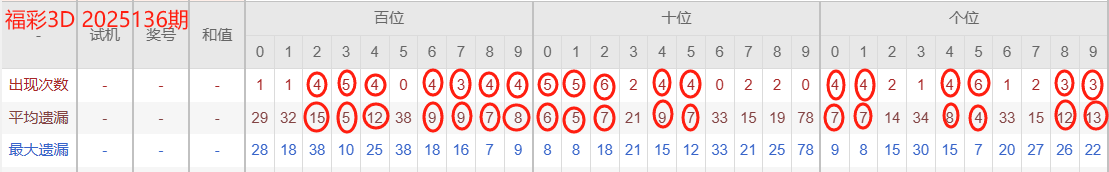 2025135期开奖号码458,我们可以看出近30期百位4出现4次,十位5出现4次,个位8出现3次。